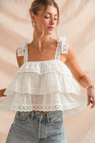 Eyelet tiered lace trim top