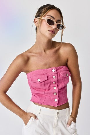 Washed denim button down top