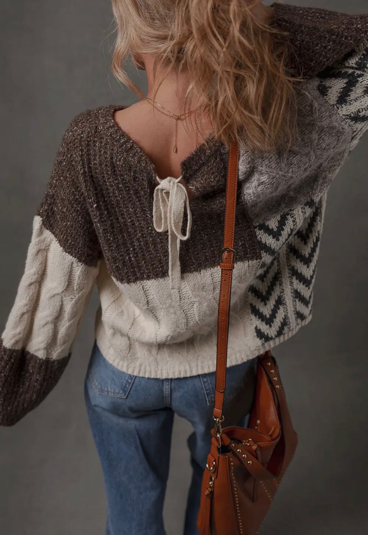 Colorblock back tie sweater