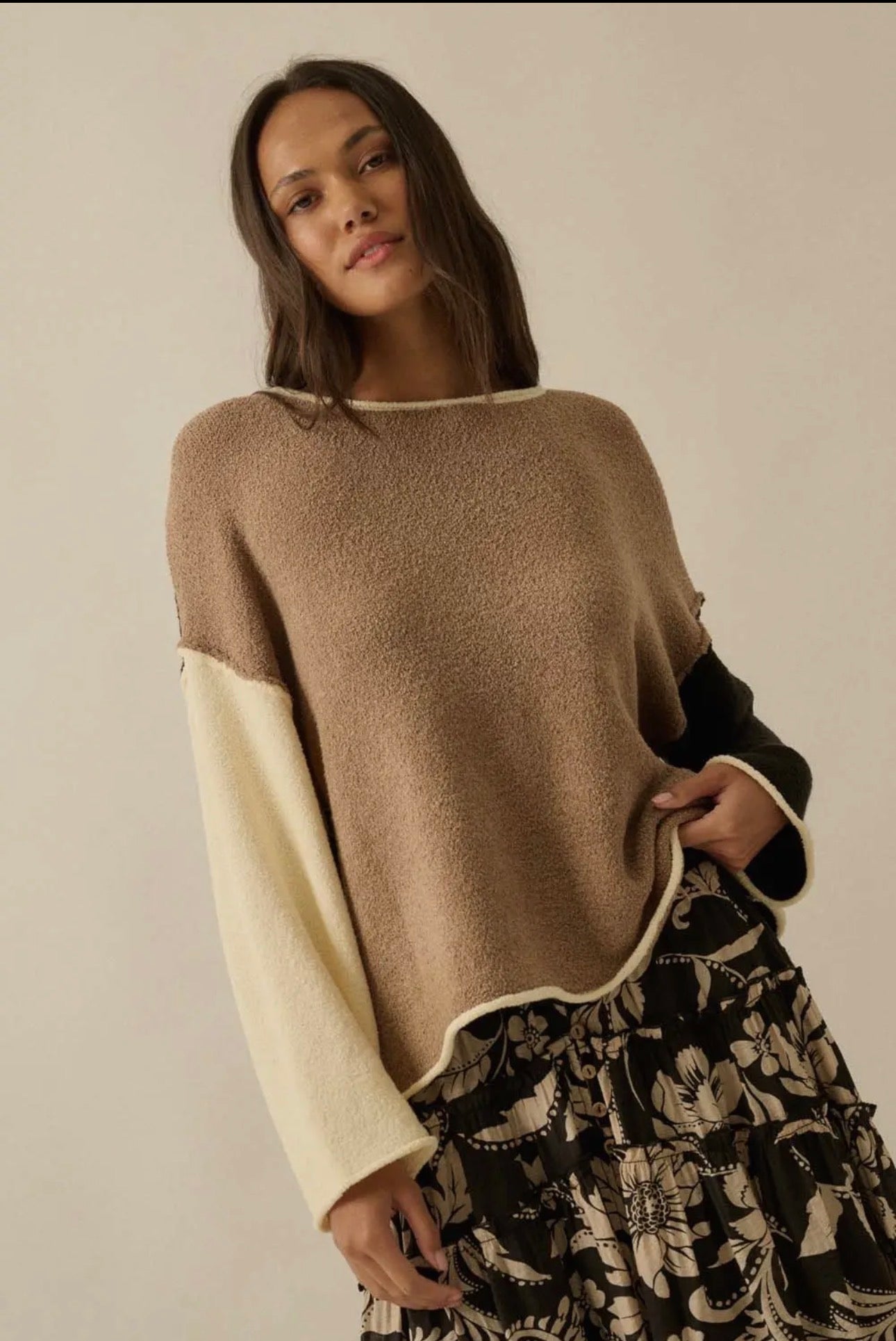 Textured colorblock off the shoulder sweater